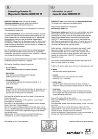 Bij thermoprint wordt een speciaal kleurenlint gebruikt om te printen. Dat lint word door een thermodrukknop geleid die wordt verhit; op die manier wordt het te printen beeld overgebracht. Het gladde oppervlak zorgt ervoor dat de kleurafdruk exact overeenkomt met het voorbeeld, zo wordt op COROSTOC TT etiketten een uitstekende drukkwaliteit bereikt. Door de ingestanste sturing op het plaatje herkent de GAP sensor in uw apparatuur het formaat ervan. Zo kan voor een exacte positionering van de opdruk worden gezorgd. De GAP sensor moet verstelbaar zijn om op die manier de juiste positie te kunnen instellen.