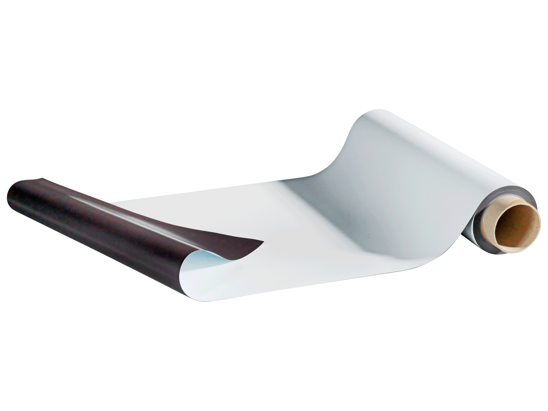 Wij kunnen hele rollen magneetfolies met andere folies voor u lamineren. Kies uit vele materialen zoals wit of gekleurd PVC, tape of whiteboard coating. Wij lamineren uw gewenste oppervlak op de magnetische of niet-magnetische zijde.