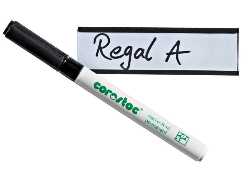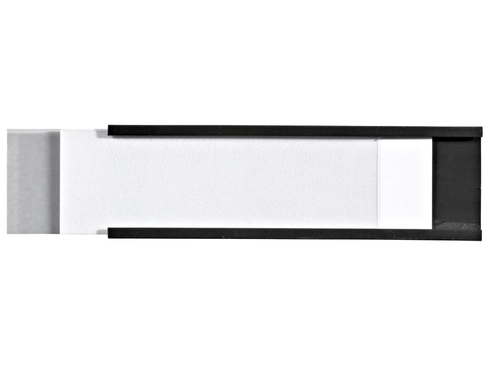 De praktische inschuifstrips voor etiketten hechten op ijzerhoudende oppervlakken dankzij hun magnetische achterzijde en maken het eenvoudig om de etiketten te verwisselen. Een bijpassende etiket en transparante folie zijn bij de levering inbegrepen.