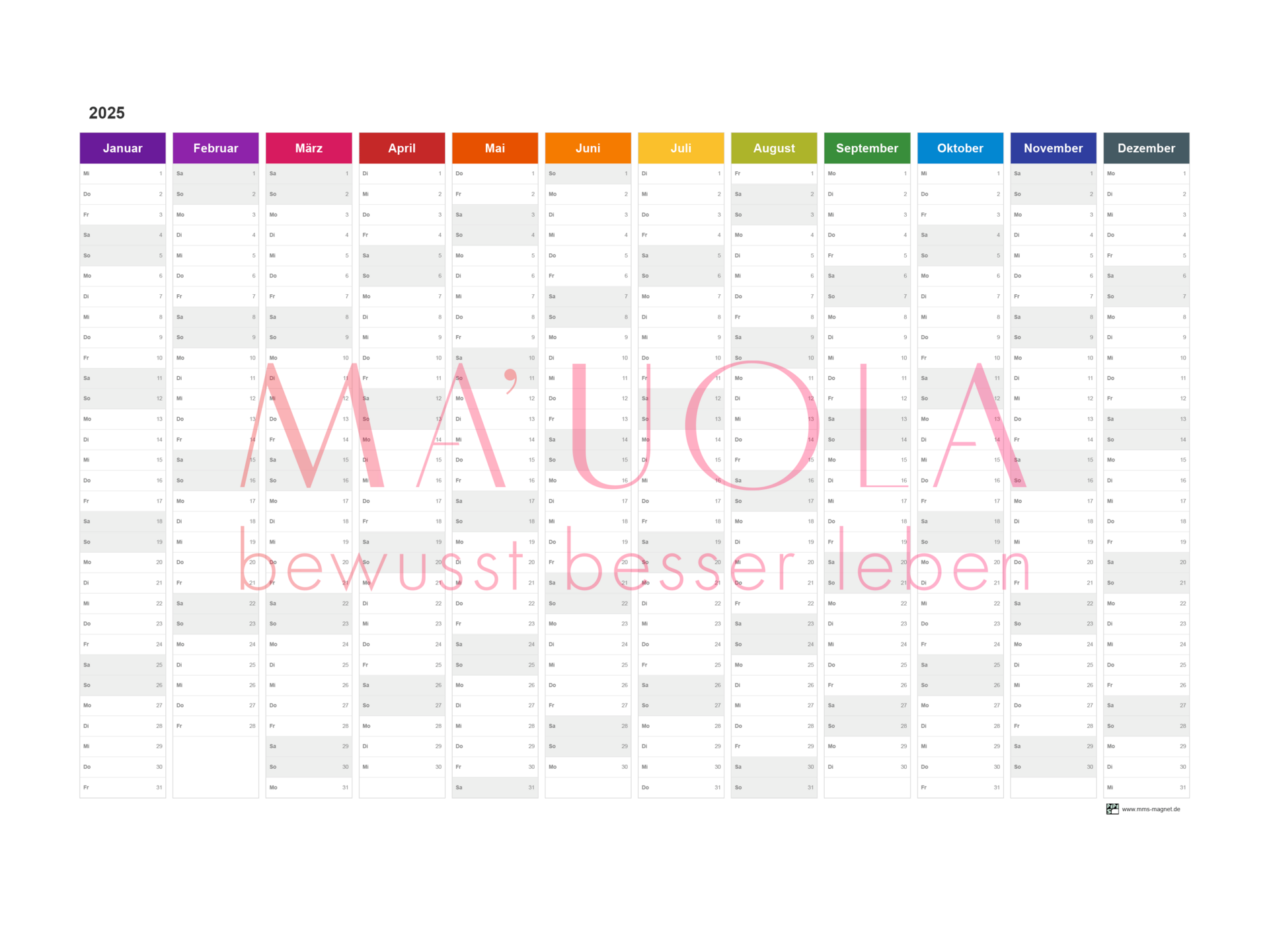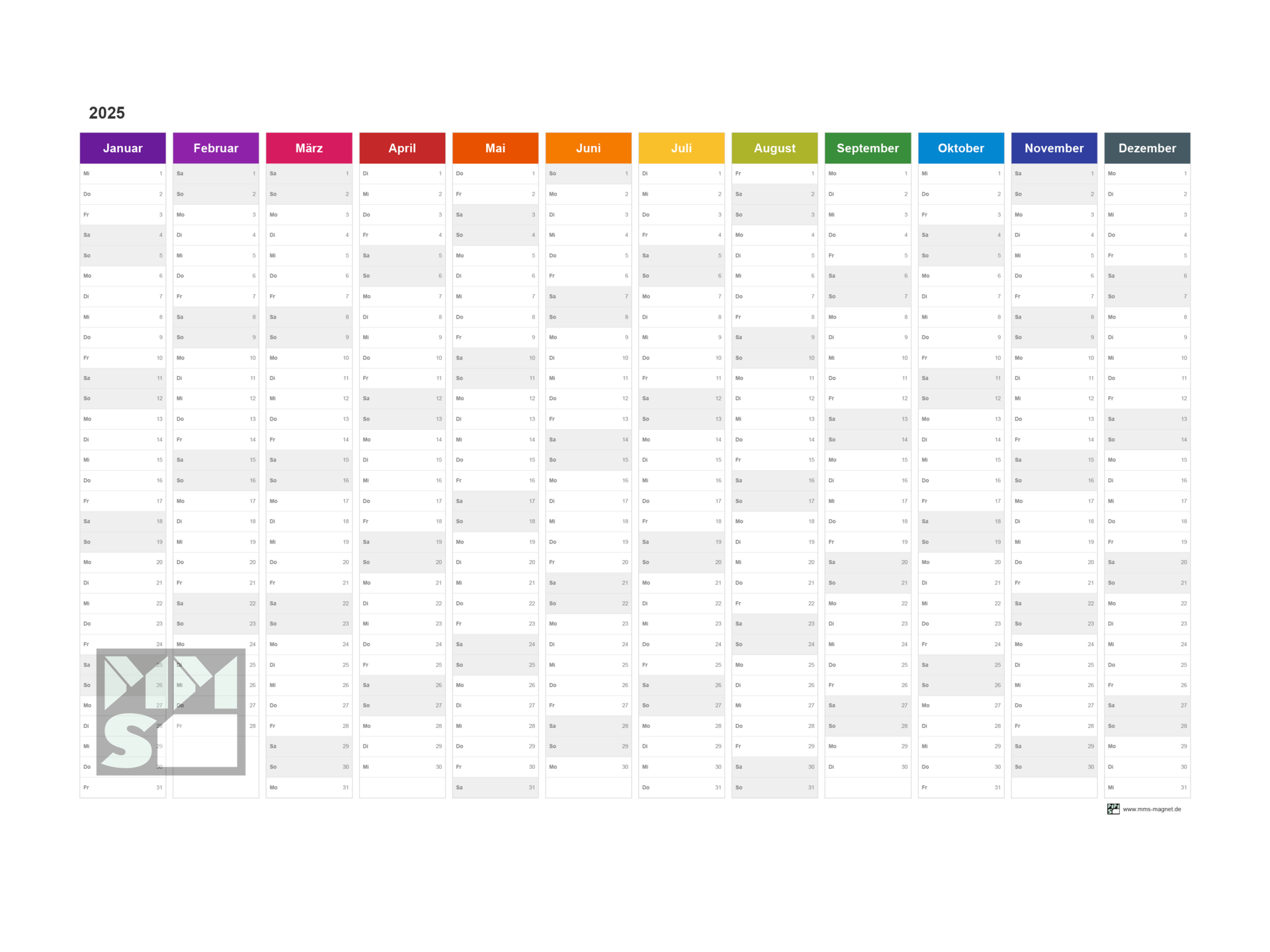 Het hele jaar in één oogopslag: met onze magnetisch hechtende wandkalender kunt u gemakkelijk uw afspraken of die van uw medewerkers organiseren. En het beste? Volgend jaar haalt u hem eenvoudig van de muur dankzij de magnetische hechting en vervangt u hem door een nieuwe versie voor het volgende jaar. Maximale flexibiliteit en gewoon praktisch.