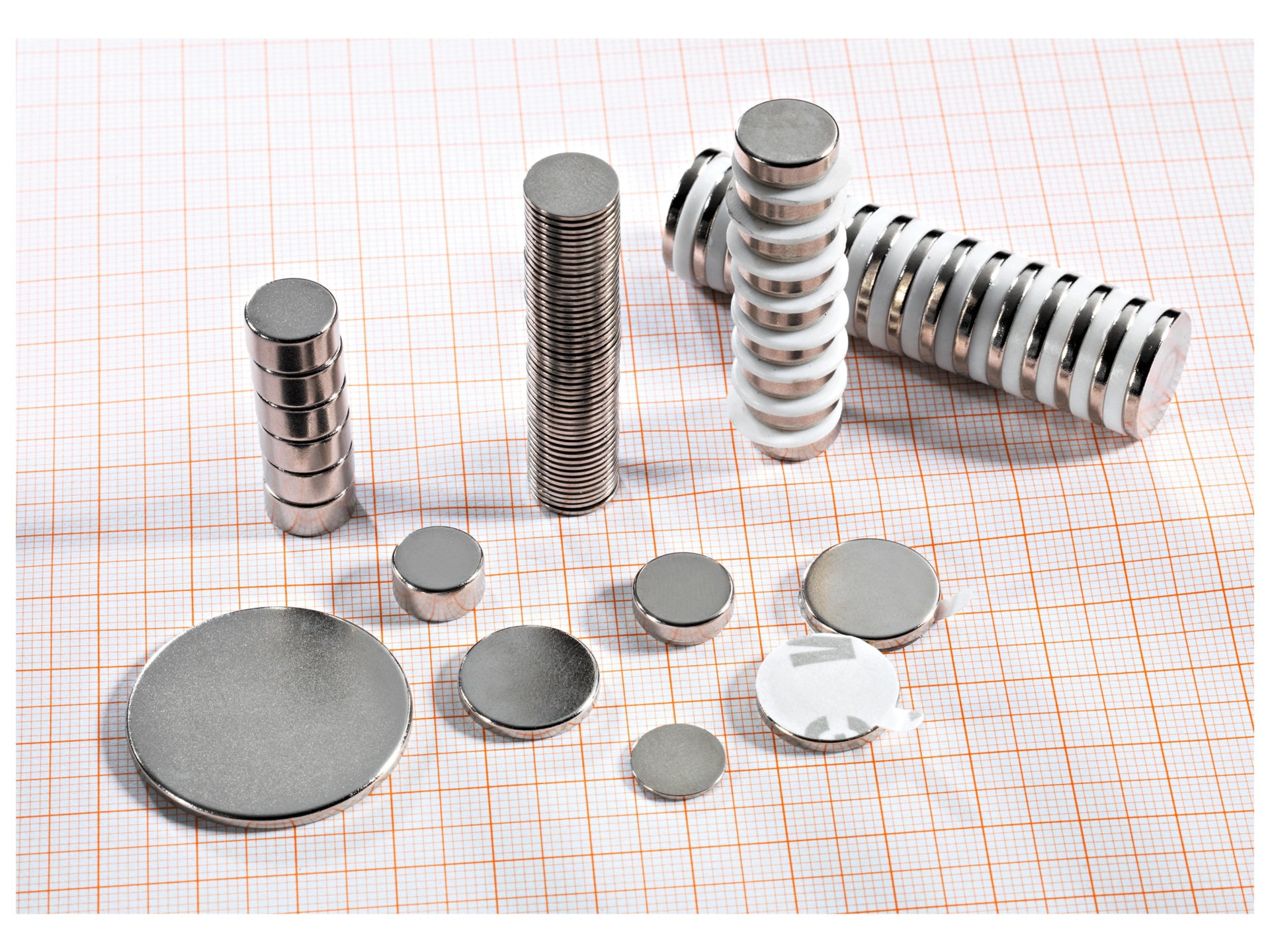 Neodymium magneten (NdFeB), gemaakt van een neodymium-ijzer-borium-legeringen, zijn momenteel de sterkste permanente magneten. Ze zijn verkrijgbaar in verschillende diameters en diktes. Ze zijn ook verkrijgbaar met en zonder kleeflaag voor eenvoudige bevestiging. Met behulp van deze kleine knoopmagneten kan voortaan bijna alles gemagnetiseerd worden - zo sterk als een huis en eenvoudig te verwisselen.